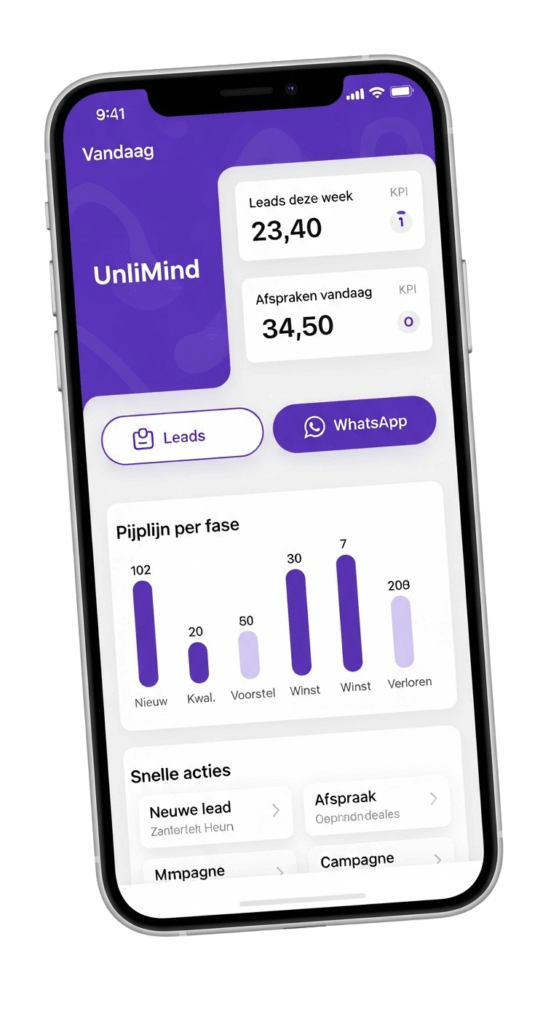 Bouw visuele workflows met triggers (formulier, tag, dealfase, betaling, afspraak), acties (mail/WhatsApp, taken, pipelines), conditions, delays en A/B-tests. Perfect voor bureaus en coaches om leads op te warmen, afspraken te plannen en follow-ups te automatiseren.